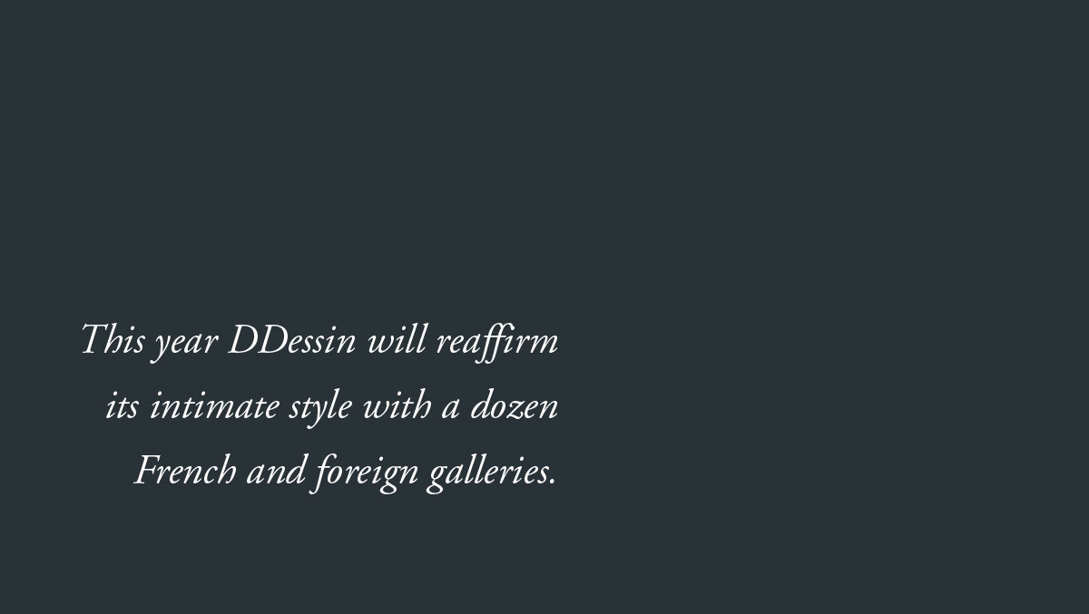 DDessin will reaffirm its intimate style this year. A dozen French and foreign galleries will honour all forms of contemporary drawing through multiple exhibit formats and techniques.