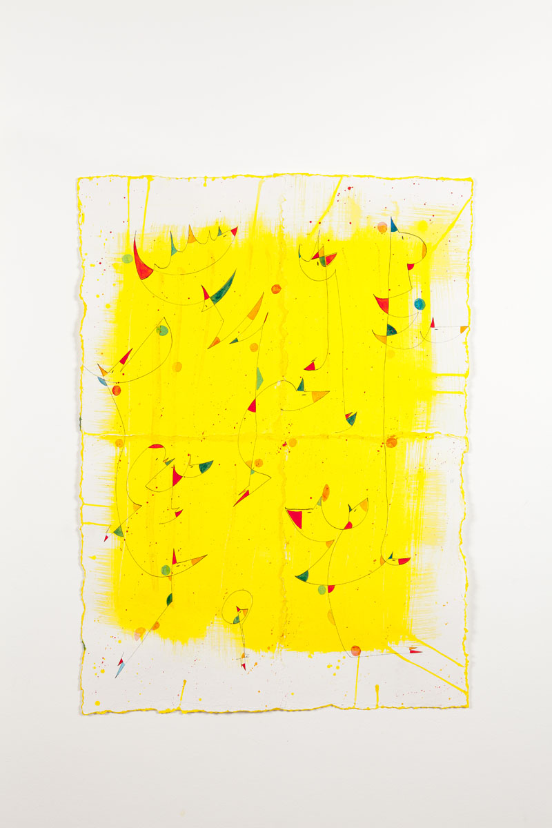 Profondément engagé dans la société, le travail d’Annina Roescheisen ne peut se dissocier des combats que sont la paix (#whatbringspeace) et l’aide aux personnes fragiles. Rien de surprenant alors que l’onirisme soit très présent dans sa démarche artistique. «Mon dessin au trait est la traduction la plus directe et la plus pure de mon émotion, la simplification du moyen permet cela». Cette citation d’Henri Matisse résume parfaitement la démarche d’Annina Roescheisen, un trait qui semble simple de prime abord pour laisser le temps au regardeur de plonger dans l’univers de l’artiste. On perçoit alors de petites figures biomorphiques, de petites formes dans des espaces vides. Le travail d’Annina Roescheisen nous interpelle assurément. Est-ce un sentiment personnel, un souvenir ou alors ces couleurs, les couleurs de la poésie ? Les dessins exposés sont faits de rêves et d’apesanteur. Notre rencontre avec l’œuvre prend naturellement la forme d’une contemplation et du désir de mieux connaître son auteure.